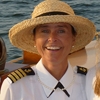 “When someone first called me an old gaffer, I thought, ‘Hey! I’m not that old!,’” says Capt Iris who was the lone female in a class of 20 males when she took courses to help earn her captain’s license from the U.S. Coast Guard.