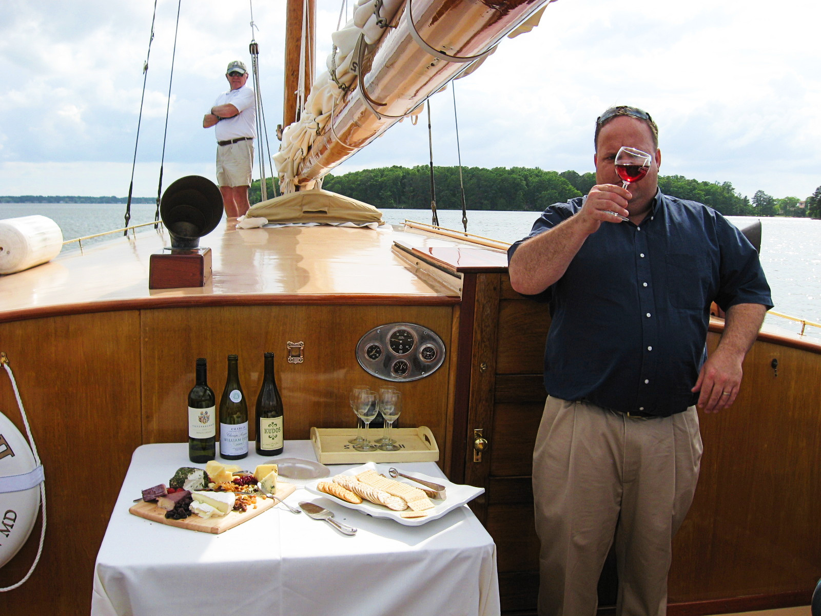 What got us started offering sail charter wine tasting tours was when a guest asked “do you offer a ‘Mom’s Time Out’ Wine Tour?” The answer? Sure! You deserve it. Sail Selina II’s Wine tasting cruises are available all week long and can be booked per person, or as a private Sailing tour. Sit back and relax, soak in the sights, and enjoy your flight of 3 white wines and 3 red wines. Once you figure out your favorite then enjoy a full glass of it too. And since we don’t run a winery, there’s no sales pitch or pressure to join a wine club or buy a case of wine after your tasting.